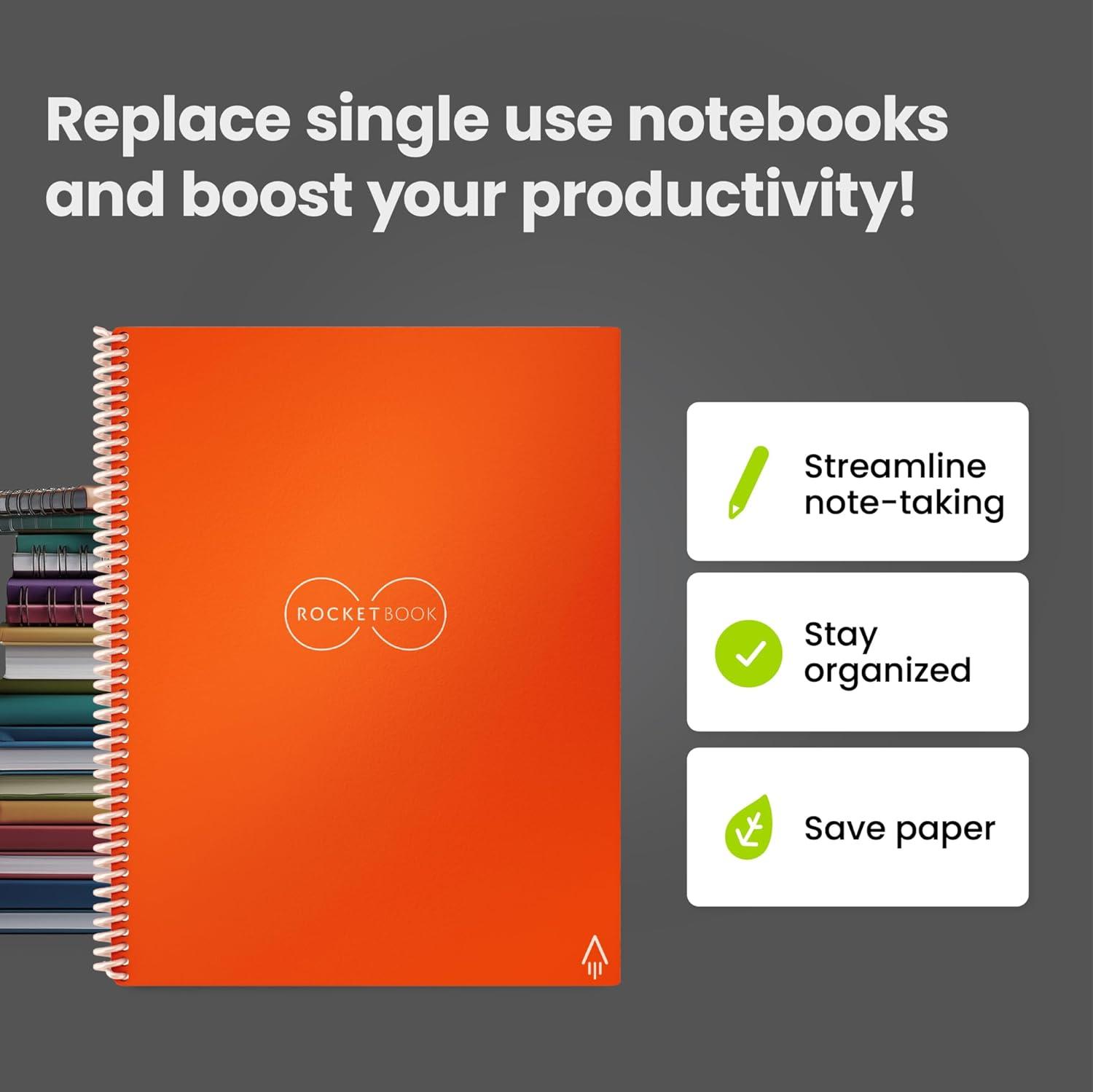 Rocketbook Core Reusable Spiral Notebook, Letter Size 8.5×11, Orange – Dotted Pages, App-Connected, Erasable, Durable Cover, Ideal for School, Work, and Creative Projects