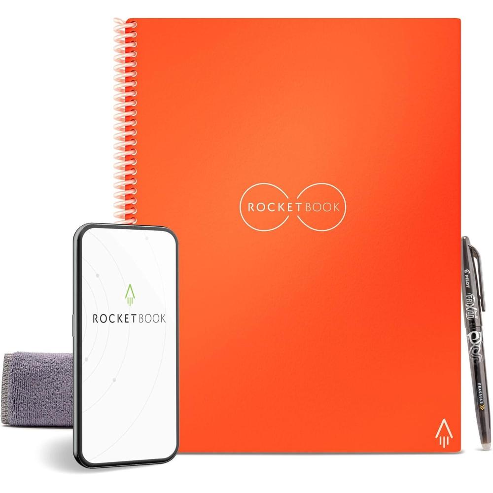 Unlock your creativity and enhance your productivity with the Rocketbook Core Dotted Notebook, the perfect companion for drawing, sketching, and more. Ideal for college students, working professionals, teachers, and anyone who values organized note-taking, this notebook combines traditional design with modern technology for a superior writing experience. This versatile notebook features a durable, waterproof cover and thick, reusable pages. The side spiral design allows the notebook to lay flat, making it a perfect canvas everything from bullet journaling and creating layouts to graphing equations, artistic sketches, and visualizing diagrams. Its dotted pages are ideal for precise geometry, shapes, and grid views, allowing for flexible, flowing ideas and artistic expression. The Rocketbook Core Dotted Notebook is app-connected, so you can easily save, organize, and share your notes and visual representations. Use it to sketch out concepts, brainstorm thinking ideas, or engineer detailed plans. The included Pilot Frixion pen lets you erase and switch between projects with ease, enhancing your productivity and providing the freedom to adapt your notebook to any task. This flexible process supports ideation and enhances productivity, making it ideal for artists, engineers, and creators alike. It’s a thoughtful gift for back-to-school, professional settings, or any occasion where creativity and organization are key.